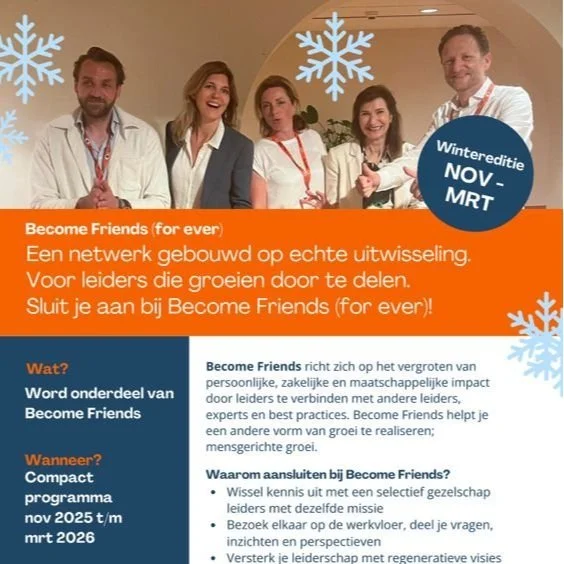 Become Friends is a concept developed right from the heart by Annemieke Roobeek and Josien Leyer, professionals in leadership development in collaboration with B for Good Leaders